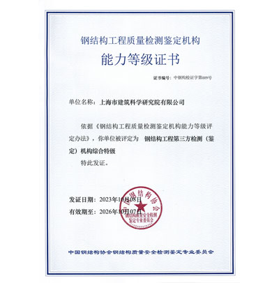 鋼結構工程第三方檢測(鑒定)機構綜合特級