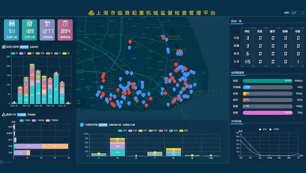 涉及所有臨港新片區(qū)工地,項目種類多、全覆蓋、全方位,開發(fā)完成《臨港智慧化監(jiān)管數(shù)據(jù)看板》系統(tǒng)及申報微信小程序APP。