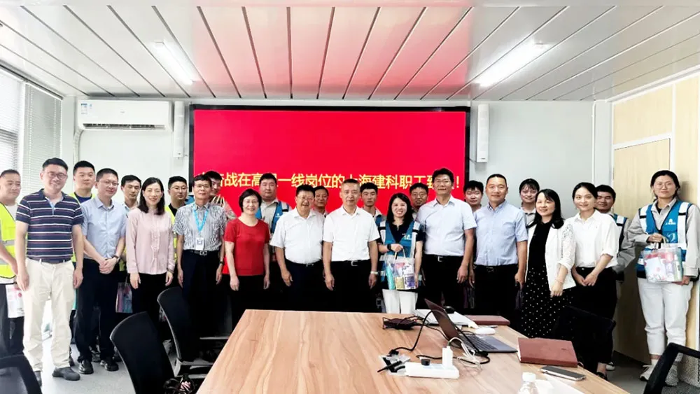 7月17日,上海建科集團黨委書記、董事長王吉杰,集團黨委委員、副總裁何錫興等一行赴上海建科臨港辦事處開展調(diào)研,看望慰問一線員工。