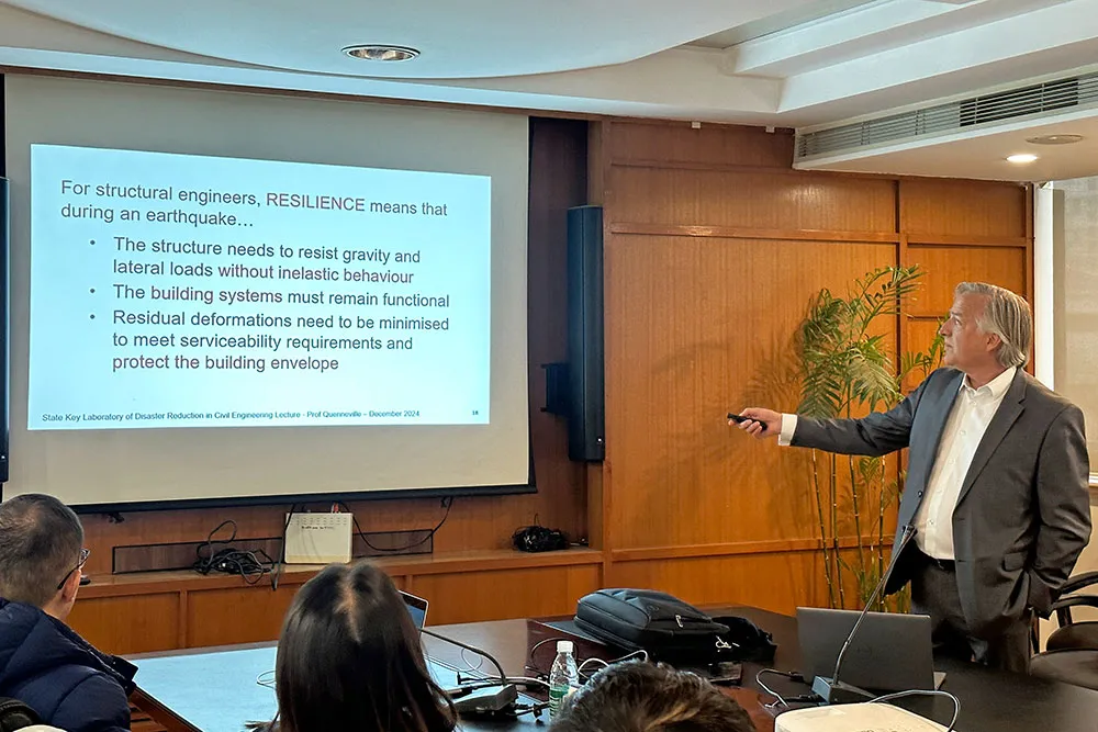 近日,新西蘭奧克蘭大學(xué)土木工程學(xué)院前院長Pierre Quenneville教授一行來訪上海建科院,并就工程結(jié)構(gòu)抗震韌性領(lǐng)域相關(guān)研究作主題交流。上海建科集團(tuán)科技創(chuàng)新部副總經(jīng)理(主持工作)王卓琳,上海建科院總工程師許清風(fēng)出席會議。結(jié)構(gòu)所、更新所相關(guān)負(fù)責(zé)人參會。會議由王卓琳主持。