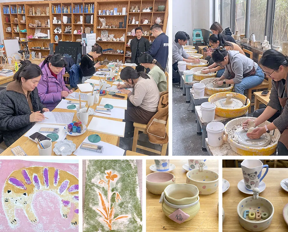 3月5日,上海建科院的女職工們或捏塑陶土、施釉燒制,體驗(yàn)從泥土到藝術(shù)品的蛻變;或用木刻刀雕繪各式圖案,融合自然元素印染成畫,制作成一件件“春日花器”。