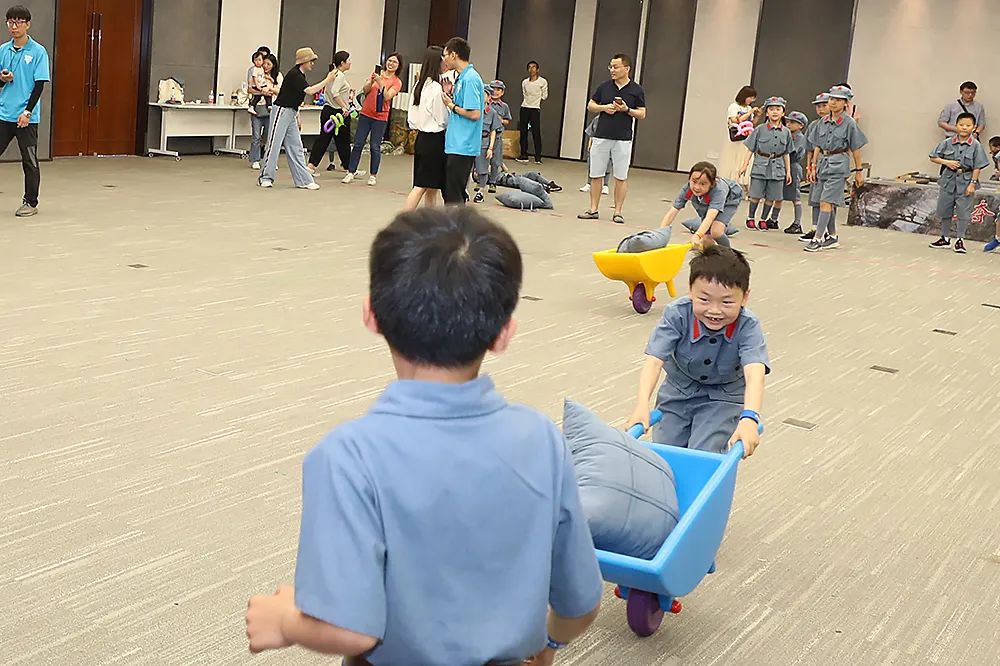 本次活動(dòng)根據(jù)小朋友的年齡設(shè)置了幼兒組和少兒組,組織開展小紅軍競(jìng)技賽場(chǎng),包括了匍匐障礙賽、南泥灣大豐收、拯救傷員計(jì)劃、獨(dú)輪車支前、偵察兵突圍、投擲手榴彈等項(xiàng)目。在競(jìng)賽環(huán)節(jié)中,小朋友們充分發(fā)揚(yáng)了紅軍團(tuán)結(jié)協(xié)作的精神,與家長(zhǎng)和隊(duì)友們一起全情投入到比賽項(xiàng)目中,活動(dòng)的趣味性讓小朋友們意猶未盡。