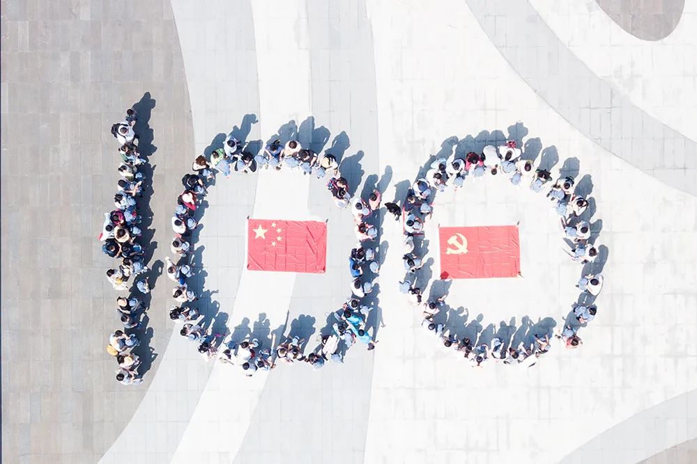 上海建科院?jiǎn)T工及子女集體站位航拍建黨100周年logo,獻(xiàn)禮建黨百年。