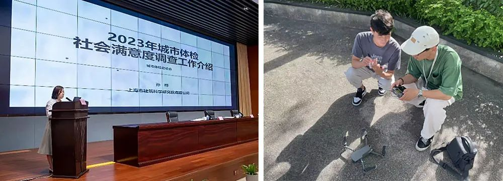 低碳院城市體檢團隊在本市大規(guī)模啟動城市體檢的七月中,連續(xù)奮戰(zhàn)研究編制了本市城市體檢社會滿意度問卷,同時為解決既有城市現(xiàn)狀數(shù)據(jù)難獲取和不精確等問題,在戶外利用無人機技術(shù)對城區(qū)現(xiàn)狀建筑風(fēng)貌、街道尺度、綠化分布等進行信息采集工作,大大提升了體檢工作中城市現(xiàn)狀信息獲取效率和準確度。