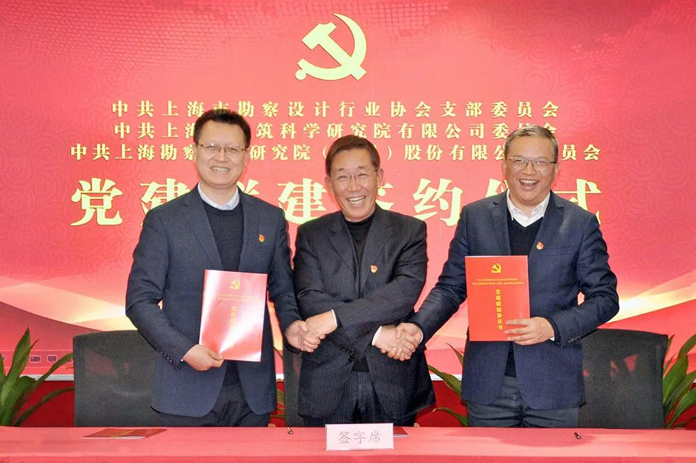 12月5日,上海市勘察設計行業(yè)協(xié)會黨支部與上海市建筑科學研究院有限公司黨委、上??辈煸O計研究院(集團)股份有限公司黨委分別簽署黨建聯(lián)建協(xié)議。上勘設協(xié)黨支部書記、秘書長忻國樑,黨支部委員、副秘書長魏國樑,黨支部委員、副秘書長徐秉章,上勘集團黨委副書記、董事長陳麗蓉,黨委書記、總裁武浩,黨委委員、副總裁金宗川,上海建科院黨委書記、執(zhí)行董事楊建榮,黨委副書記、總經(jīng)理趙榮欣出席簽約儀式。上勘設協(xié)、上勘集團相關部門領導,上海建科院黨委辦公室、更新所、交通所相關負責人參會。會議由魏國樑主持。