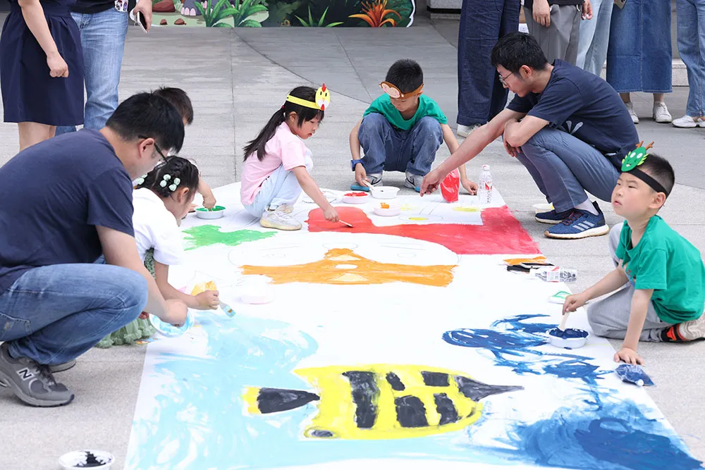 親子共同描繪海陸空生物美麗畫(huà)卷,通過(guò)繪畫(huà)的形式展現(xiàn)了小朋友們對(duì)生物多樣性的理解和感悟。