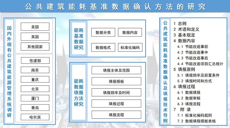 項目針對中國公共建筑能耗基礎數(shù)據(jù)統(tǒng)計方式不一致、缺乏數(shù)據(jù)標準和統(tǒng)計準則、缺乏數(shù)據(jù)上傳匯報的方法和規(guī)范的問題,基于對世界發(fā)達國家及中國不同氣候區(qū)城市公共建筑能源管理系統(tǒng)的調研,聚焦中國公共建筑能效提升工作實踐,研究建立能耗基準數(shù)據(jù)的內容、格式、模板、流程,編制形成《公共建筑能耗基準數(shù)據(jù)確認及填報技術導則》(報批稿),填補了國內公共建筑能效提升數(shù)據(jù)基準的定義及填報方法的空白,為全國公共建筑能耗數(shù)據(jù)匯聚和相關信息平臺的建設提供了可靠的依據(jù)。