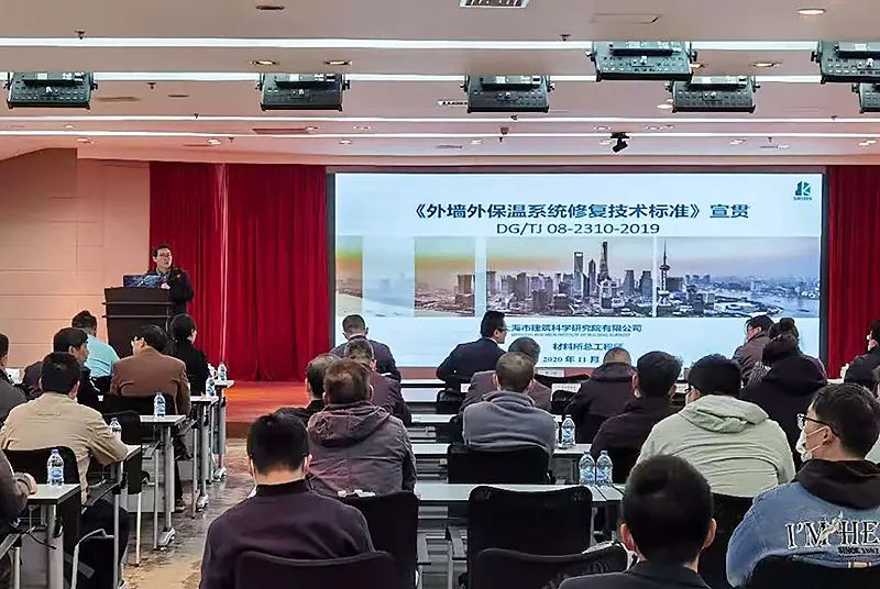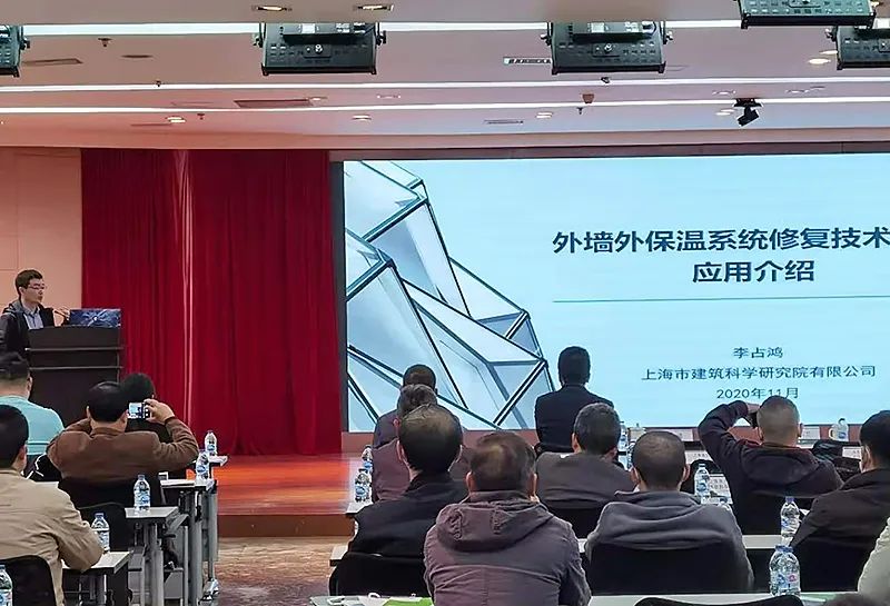 上海建科院材料所總工程師陳寧代表標(biāo)準(zhǔn)編制組,對《標(biāo)準(zhǔn)》的編制背景、編制思路、標(biāo)準(zhǔn)內(nèi)容及工程應(yīng)用等進(jìn)行了介紹和解讀。針對本市外墻外保溫系統(tǒng)特點(diǎn),標(biāo)準(zhǔn)編制過程確立了四個(gè)原則:一是兼顧安全與節(jié)能;二是建立系統(tǒng)與各層材料相結(jié)合的檢測評估技術(shù);三是基于評估結(jié)果制定有針對性的修復(fù)技術(shù)方案;四是確保修復(fù)技術(shù)方案的高效、環(huán)保、耐久和少擾民。會上對標(biāo)準(zhǔn)的總則、術(shù)語、基本規(guī)定、檢測與評估、系統(tǒng)及材料、設(shè)計(jì)、施工和驗(yàn)收等八個(gè)章節(jié)及附錄,進(jìn)行了條文講解,重點(diǎn)介紹了技術(shù)指標(biāo)的試驗(yàn)和工程驗(yàn)證、外墻外保溫系統(tǒng)質(zhì)量技術(shù)狀況評估方法、各種修復(fù)技術(shù)特點(diǎn)及其適用范圍,以及依據(jù)評估結(jié)果確定修復(fù)技術(shù)的有關(guān)規(guī)定。