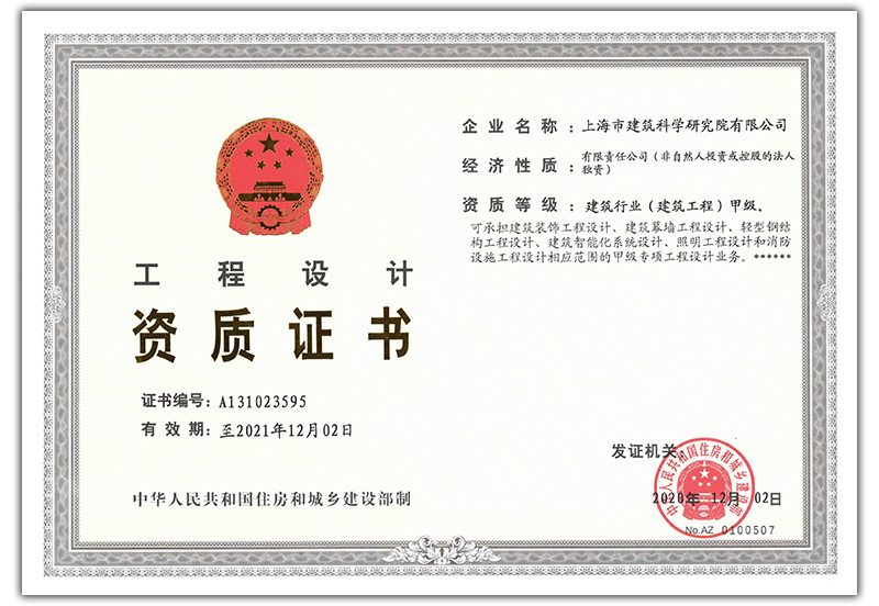 近日,上海市建筑科學(xué)研究院有限公司獲得住建部核發(fā)的“建筑行業(yè)(建筑工程)甲級(jí)”工程設(shè)計(jì)資質(zhì)證書(shū),上海建科院子公司上海建科廣申建筑設(shè)計(jì)有限公司設(shè)計(jì)資質(zhì)上移工作順利完成。