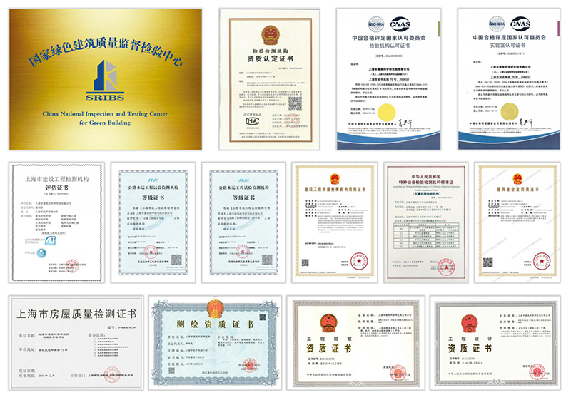 上海建科院擁有各類(lèi)國(guó)家和部、市級(jí)資質(zhì)及認(rèn)可67項(xiàng),包括國(guó)家綠色建筑質(zhì)量監(jiān)督檢驗(yàn)中心、國(guó)家民用建筑能效測(cè)評(píng)機(jī)構(gòu)、交通部公路工程綜合甲級(jí)和橋梁隧道工程專項(xiàng)檢測(cè)資質(zhì)、上海市房屋質(zhì)量檢測(cè)資質(zhì)、上海市建設(shè)工程質(zhì)量檢測(cè)機(jī)構(gòu)資質(zhì)、中國(guó)特種設(shè)備檢驗(yàn)檢測(cè)核準(zhǔn)證、甲級(jí)建筑設(shè)計(jì)資質(zhì)、甲級(jí)測(cè)繪資質(zhì)、甲級(jí)工程勘察資質(zhì)等。