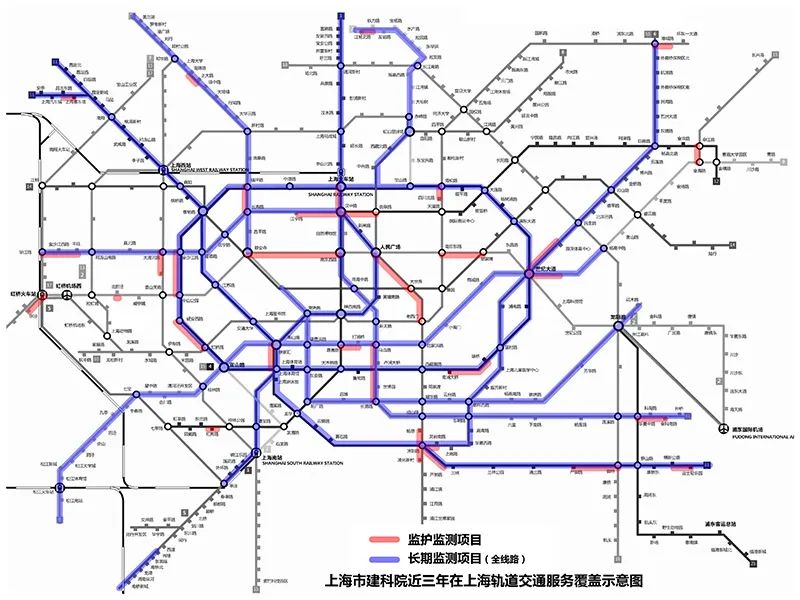 上海市建科院承擔上海軌道交通監(jiān)護測量服務(wù),覆蓋幾乎所有運營中的線路;同時承接運行上海地鐵全線路長期監(jiān)測和在建地鐵的第三方環(huán)境監(jiān)測服務(wù),監(jiān)測總里程超300公里