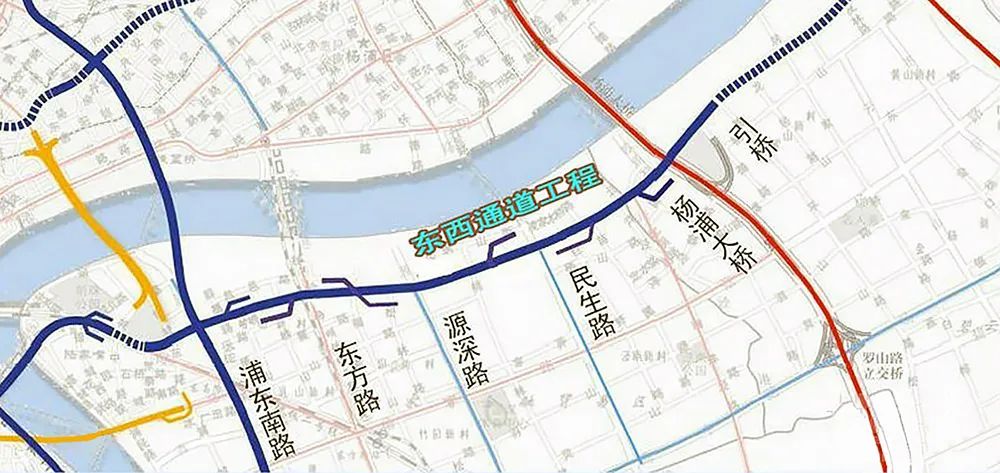 項目是市井字形通道的重要組成,與延安路高架形成貫通的東西向交通走廊,完善城市路網(wǎng),實現(xiàn)浦東浦西路網(wǎng)一體化;把延安東路隧道的過境交通從地下分離出小陸家嘴地區(qū),改善小陸家嘴的區(qū)域交通和環(huán)境;線位沿線穿越浦東核心區(qū),通過設(shè)置出入口匝道,可加強核心區(qū)與骨干路網(wǎng)的聯(lián)系,擴大核心區(qū)的時效圈,提高輻射力。