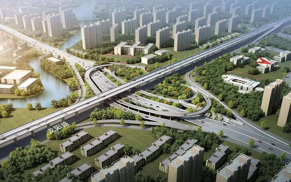 項目北起龍陽路立交,南至高科西路,全長約1.5公里,采用主線跨線橋(雙向6車道)+地面輔路(雙向4車道)的布置形式,建成后將改善周邊交通擁堵情況。
