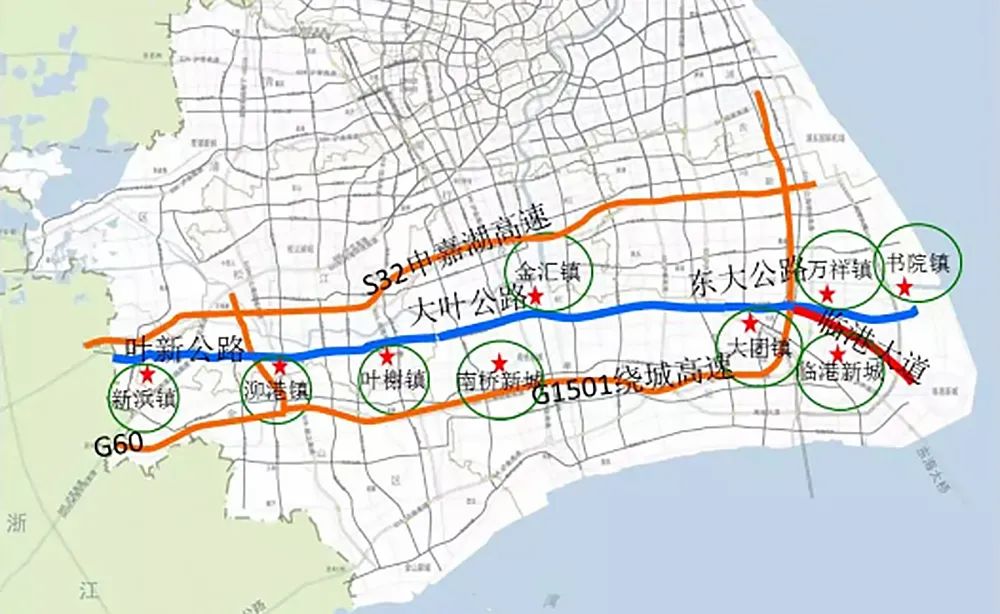 項目為道路發(fā)展,西起上海浙江省界,經(jīng)金山、奉賢至浦東南蘆公路,全長約62km,道路規(guī)劃紅線寬度32~60m,按不同路段分別采用一級公路公路標(biāo)準(zhǔn),設(shè)計車速60~80km/h。