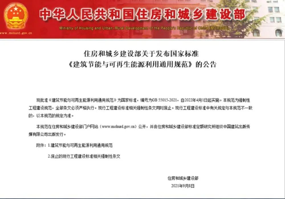 2021年10月13日,住建部正式發(fā)布了國家強制性標準《建筑節(jié)能與可再生能源利用通用規(guī)范》(GB55015-2021),自2022年4月1日起實施?!半p碳”可持續(xù)理念逐漸融入“規(guī)劃、開發(fā)再到運營”的房地產全生命周期中,相關政策助推建筑低碳轉型。