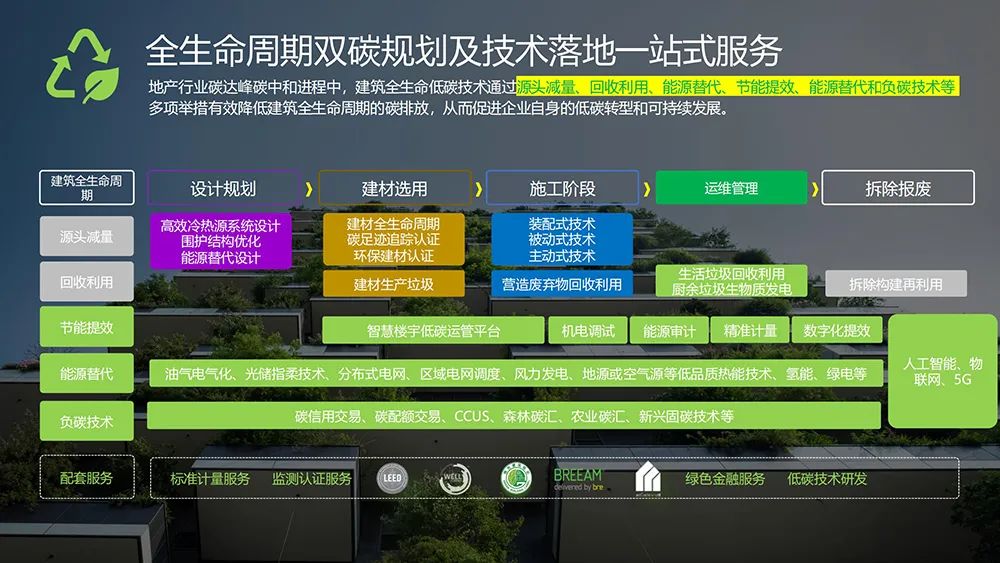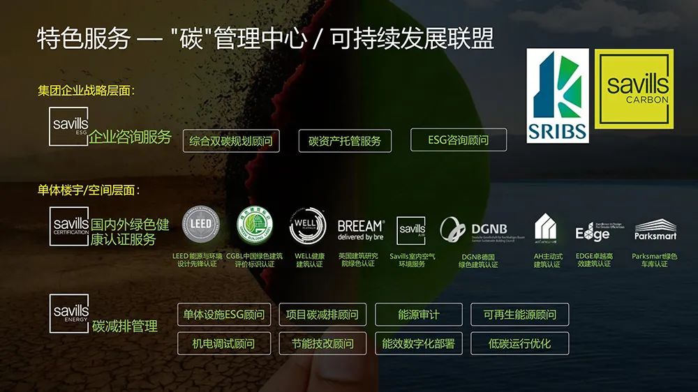 在“雙碳”背景下,上海市建筑科學研究院有限公司作為上海市首批獲得“上海品牌”建設工程咨詢企業(yè)、首批上海市碳排放核查第三方機構,與全球領先房地產服務商、百年傳承英資企業(yè)第一太平戴維斯進行戰(zhàn)略合作,資源共享,聯合打造房地產行業(yè)和商業(yè)地產低碳綜合咨詢技術服務強勢品牌,推出全生命周期雙碳規(guī)劃及技術落地服務,從集團企業(yè)戰(zhàn)略層面與單體樓宇空間層面構筑未來雙碳規(guī)劃服務藍圖,全面貫徹可持續(xù)發(fā)展: