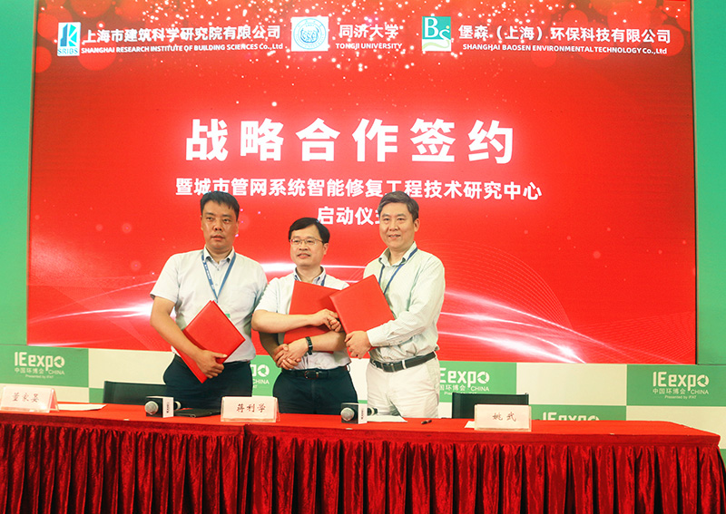 2020年8月13日下午,上海市建筑科學研究院有限公司、同濟大學和堡森(上海)新材料科技有限公司于環(huán)博會首發(fā)平臺簽署三方戰(zhàn)略合作協議,并舉行“城市管網系統(tǒng)智能修復工程技術研究中心”啟動儀式。