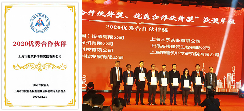 2020年12月25日,上海市醫(yī)院協(xié)會醫(yī)院建筑后勤管理專業(yè)委員會“2020年度總結(jié)暨抗疫先進表彰大會”在上海市第十人民醫(yī)院舉行,上海市建筑科學研究院有限公司獲得“2020優(yōu)秀合作伙伴”榮譽稱號,建筑節(jié)能與能效提升研究所副所長何曉燕代表單位領(lǐng)獎。該項榮譽主要授予為本市醫(yī)院基建后勤事業(yè)做出突出貢獻的合作企業(yè),本次獲授是上海建科院繼2019年后再度獲此殊榮。