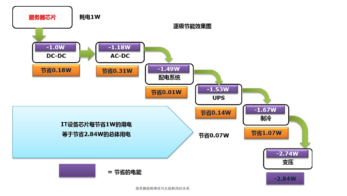 即使全國各地相繼所出政策約束數(shù)據(jù)中心的PUE值,而PUE最突出的影響因子來源于來空調(diào)能耗,可從冷源、自然冷卻、主機(jī)房空調(diào)、氣流組織優(yōu)化、負(fù)荷調(diào)節(jié)與控制等方面采取科學(xué)的空調(diào)節(jié)能技術(shù)。4)IT系統(tǒng)節(jié)能是源頭