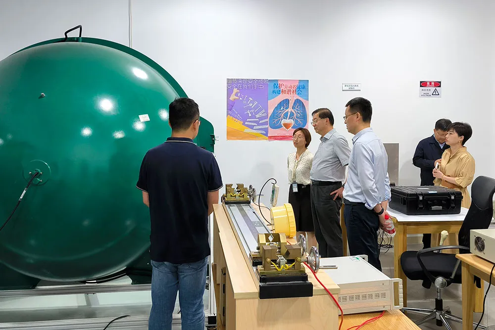 在金山智慧園,崔明華參觀了上海建科智能工廠及消防、節(jié)能、人防、聲學實驗室,實地調研了集團近年來在智能工廠產品升級和數(shù)字化建設方面的相關成果,同時也了解了集團連續(xù)多年承擔國家市場總局和上海市場局有關消防產品的監(jiān)督抽查工作,以及消防實驗室作為上海市消防救援總隊(上海市消防救援局)實訓基地為開展的系列培訓情況。