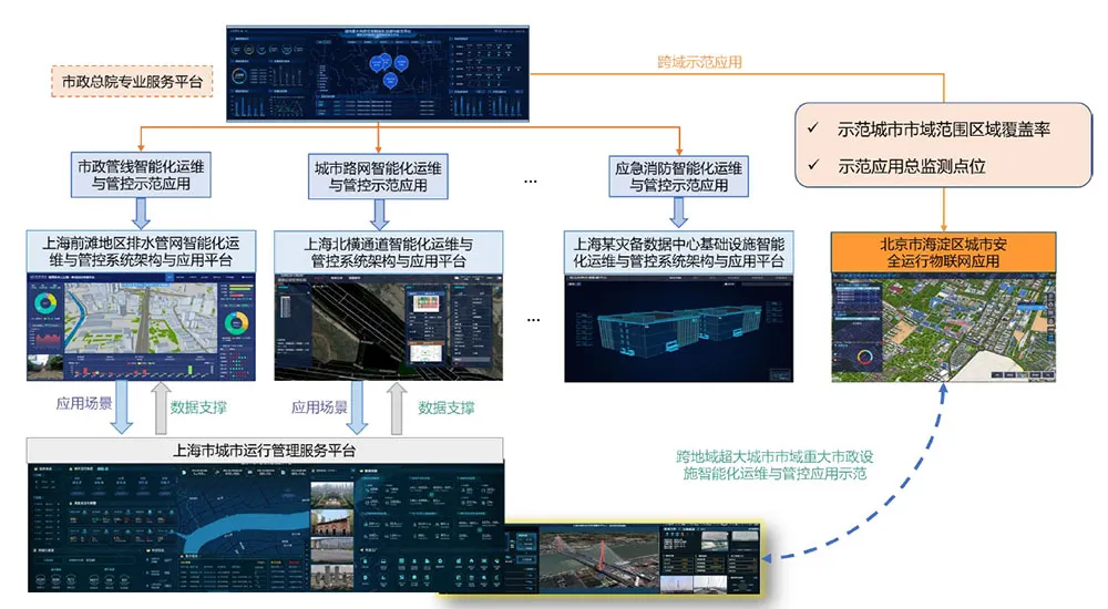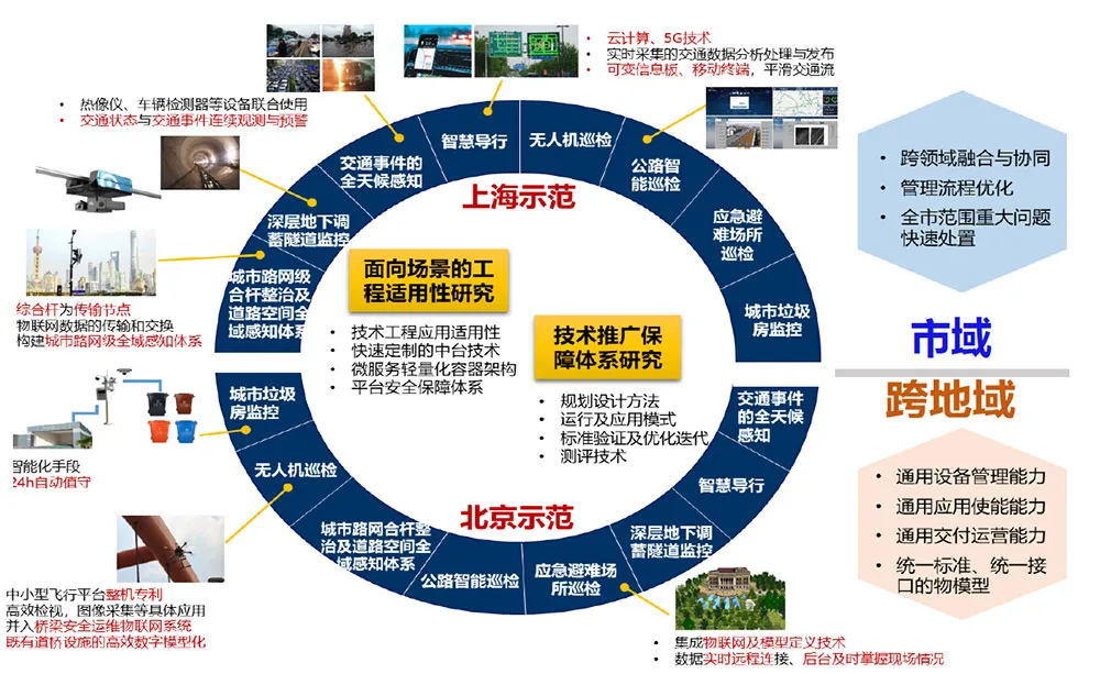 上海建科院負(fù)責(zé)的課題五緊貼智慧城市精細(xì)化管理的需求,深入研究并構(gòu)建了城市重大基礎(chǔ)設(shè)施的指標(biāo)管理體系,形成了科學(xué)的治理方法和考核機(jī)制,通過(guò)指標(biāo)體系管理系統(tǒng),實(shí)現(xiàn)了對(duì)城市監(jiān)管指標(biāo)的精準(zhǔn)把控。課題完成了上海市城市管理精細(xì)化工作平臺(tái)的示范,該平臺(tái)覆蓋上海市6300多平方公里,涉及16個(gè)區(qū)、228個(gè)街鎮(zhèn)、2661個(gè)網(wǎng)格、6441個(gè)社區(qū),管理著1553萬(wàn)個(gè)城市部件、26800公里地下管線和23.1萬(wàn)智能感知設(shè)備,以及36萬(wàn)個(gè)道路監(jiān)控視頻,實(shí)現(xiàn)了物聯(lián)網(wǎng)感知數(shù)據(jù)和視頻數(shù)據(jù)的集成管理,提供了城市地理信息的強(qiáng)大支持。同時(shí),課題也在北京經(jīng)開(kāi)區(qū)、豐臺(tái)區(qū)、海淀區(qū)、西城區(qū)等重點(diǎn)區(qū)域也開(kāi)展了示范,覆蓋了城市管線、城市交通、消防設(shè)施、城市窨井、垃圾分類等關(guān)鍵領(lǐng)域,展示了技術(shù)方案的廣度和深度。