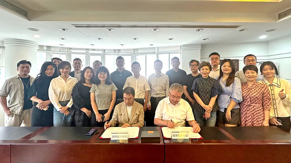 最后,在參會人員的共同見證下,朱斌和趙榮欣分別代表室內(nèi)設(shè)計(jì)分會和城市更新分會簽署了戰(zhàn)略合作協(xié)議。隨著協(xié)議的簽署,雙方將充分發(fā)揮各自的專業(yè)和資源優(yōu)勢,建立起更為緊密的合作關(guān)系,進(jìn)一步為會員企業(yè)之間架起溝通、交流、分享、合作的橋梁。