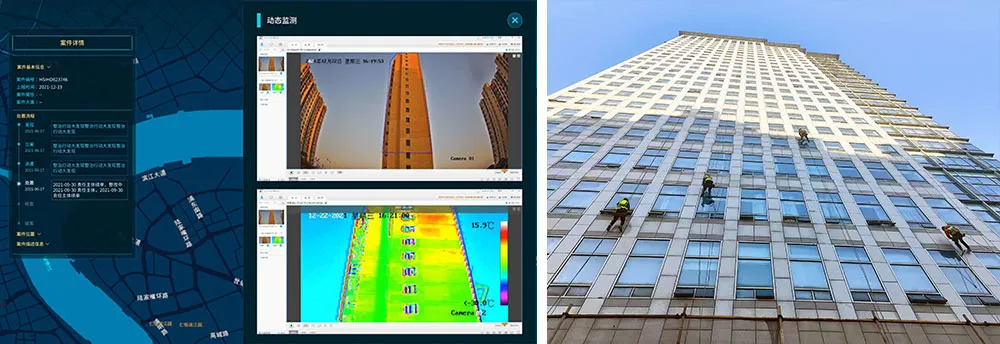 針對(duì)房屋建筑外墻外立面脫落,上海建科院可利用專業(yè)設(shè)備對(duì)建筑外墻外立面材料全面“體檢”,分析外保溫空鼓開裂情況,對(duì)建筑物外墻結(jié)構(gòu)進(jìn)行安全評(píng)估,并制定修復(fù)方案;針對(duì)建筑物滲漏水問(wèn)題,上海建科院可以通過(guò)采用多種非破壞式檢測(cè)技術(shù),快速準(zhǔn)確地查找建筑物外墻、屋頂?shù)炔课坏臐B漏水點(diǎn),制定方案提升建筑物整體防水能力;針對(duì)機(jī)電設(shè)備方面的隱患和事故,上海建科院可以對(duì)建筑物內(nèi)的電梯、空調(diào)系統(tǒng)、消防系統(tǒng)中的機(jī)電部分等進(jìn)行全面巡檢,全面評(píng)估外觀損壞、連接部位松動(dòng)、電氣線路受潮短路等重點(diǎn)問(wèn)題。面向臺(tái)風(fēng)可能引起的多種影響,上海建科院將利用物聯(lián)網(wǎng)、傳感器等技術(shù),實(shí)時(shí)監(jiān)測(cè)建筑物在臺(tái)風(fēng)中的受力情況和變形情況,對(duì)監(jiān)測(cè)數(shù)據(jù)進(jìn)行實(shí)時(shí)分析,建立災(zāi)害預(yù)警模型。