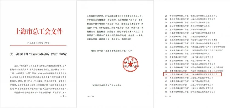 近日,上海市總工會(huì)宣布了命名77家勞模創(chuàng)新工作室為第十批“上海市勞模創(chuàng)新工作室”的決定,上海市建筑科學(xué)研究院有限公司“趙榮欣勞模創(chuàng)新工作室”成功入選!