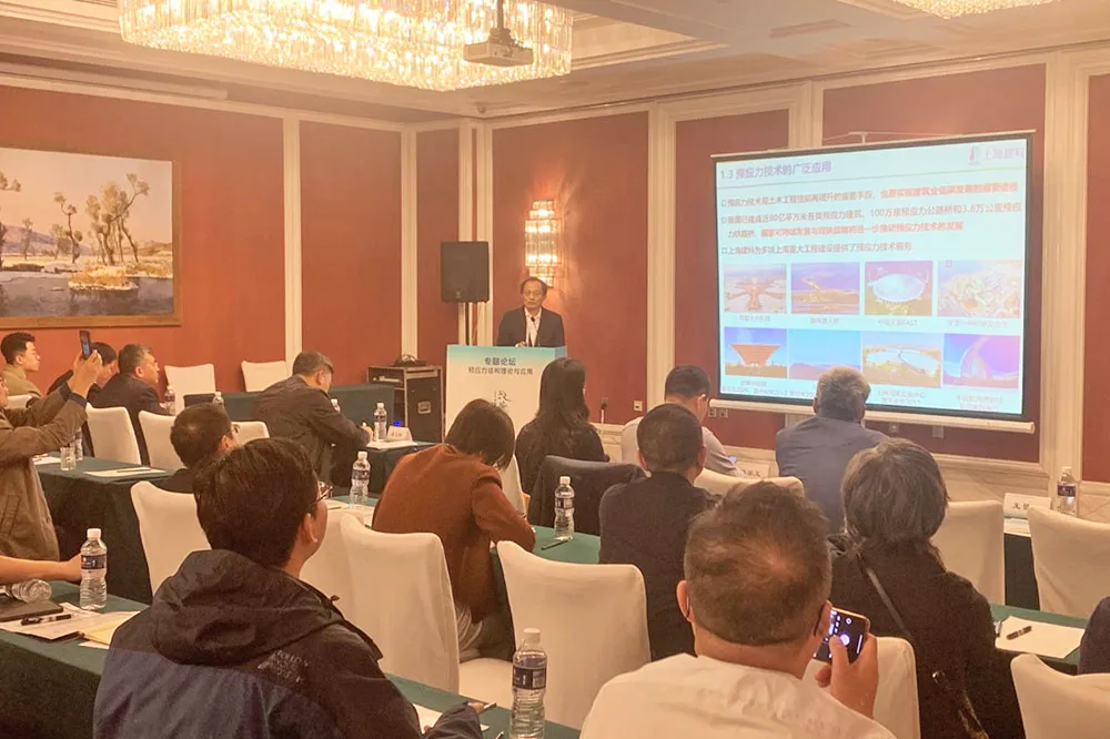 在本次論壇上,院士、專家共同圍繞“預應力建筑結(jié)構(gòu)與橋梁基礎(chǔ)理論、建造技術(shù),高性能土木工程結(jié)構(gòu)與材料研究及工程應用,預應力工程結(jié)構(gòu)診治技術(shù),預應力工程新材料、新產(chǎn)品、新結(jié)構(gòu)、新工藝、新裝備,預應力工程結(jié)構(gòu)技術(shù)標準”五大主題展開交流。以嚴謹?shù)目茖W態(tài)度和深刻的科學見解,為預應力技術(shù)的發(fā)展提供了堅實的理論基礎(chǔ)和實踐指導。許清風作了題為《預應力工程木竹結(jié)構(gòu)體系關(guān)鍵技術(shù)研發(fā)》的專題報告,并與參會專家學者進行了深入交流。