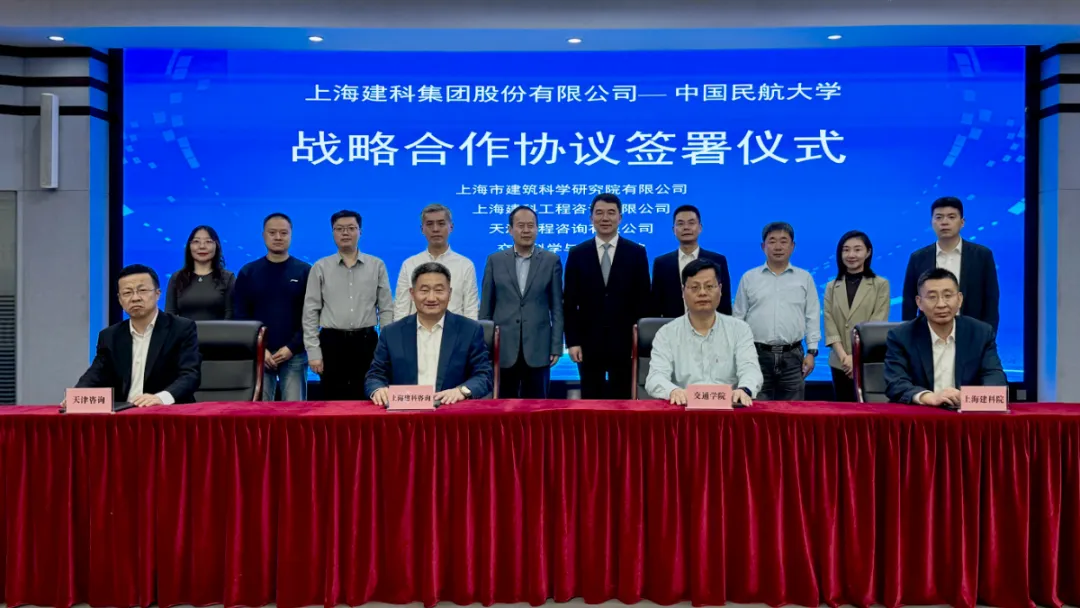 2024年10月15日,上海建科集團(tuán)下屬建科院、工程咨詢公司、天津咨詢公司共同和中國(guó)民航大學(xué)交通科學(xué)與工程學(xué)院續(xù)簽戰(zhàn)略合作協(xié)議,上海建科集團(tuán)黨委書(shū)記、董事長(zhǎng)王吉杰,中國(guó)民航大學(xué)黨委常委、工會(huì)主席王志強(qiáng),民航大學(xué)交通科學(xué)與工程學(xué)院黨委書(shū)記吳金棟共同出席見(jiàn)證簽約。
