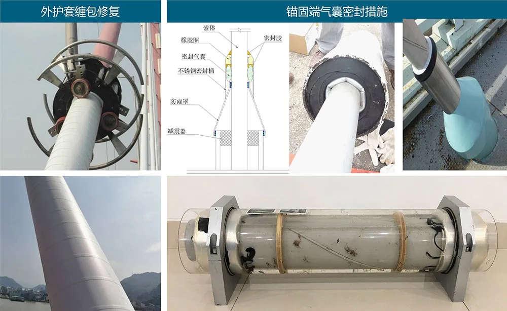 ● 高分子纏包帶防護(hù)系統(tǒng):研發(fā)了特種高分子纏包材料以及三層復(fù)合纏包帶結(jié)構(gòu),有效修復(fù)了索體護(hù)套老化及應(yīng)力開(kāi)裂問(wèn)題,實(shí)現(xiàn)卓越的防腐防水性能并攻克界面粘接難題。