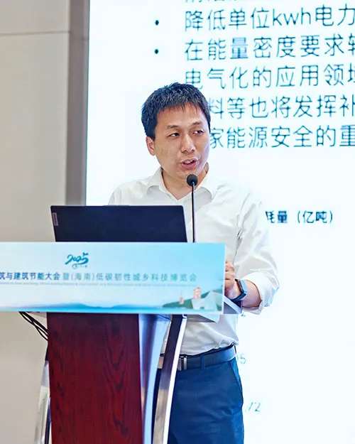 清華大學(xué)教授劉曉華以《面向零碳目標(biāo)的建筑柔性用能探索》為題進(jìn)行報告,介紹了能源系統(tǒng)的結(jié)構(gòu)變化以及對建筑側(cè)柔性用能的需求,建筑側(cè)各類等效儲能資源的特征,反映供需關(guān)系的電力動態(tài)碳排放責(zé)任因子,以及在此目標(biāo)下建筑柔性用能降低碳排放的工程示范案例。