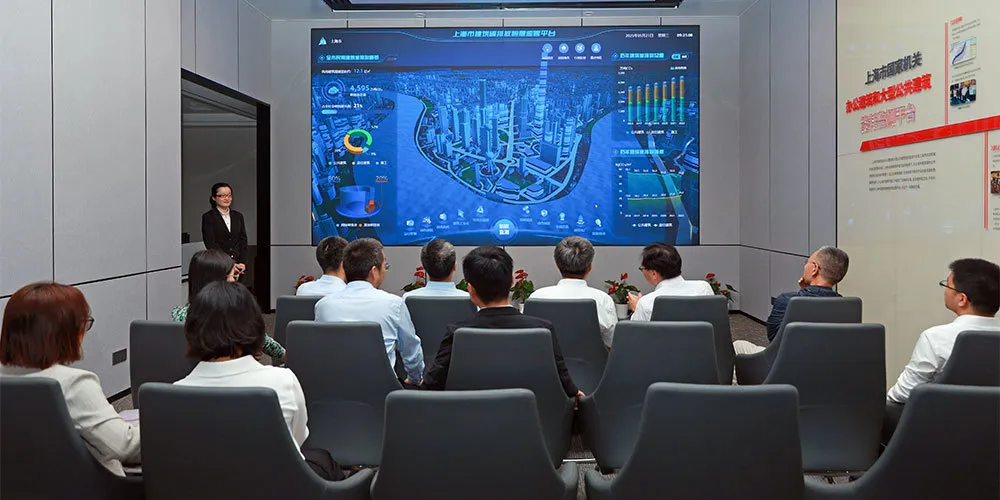 期間,倪江波一行參觀了上海市建筑領(lǐng)域碳排放智慧監(jiān)管平臺(tái),以及上海建科咨詢集團(tuán)最新一代綠色低碳建筑“建科中心”,并聽取介紹。