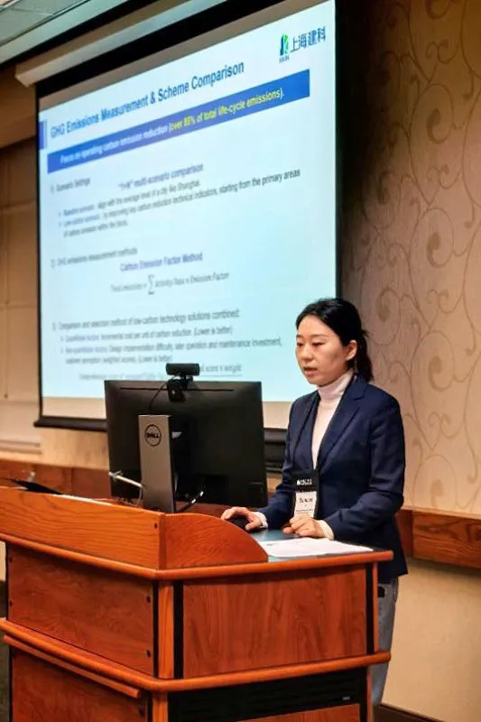 集團(tuán)運營管理部和上海建科院的相關(guān)負(fù)責(zé)人和學(xué)者代表共同參加了本次大會,其中,張蓓紅博士和孫昀燦助理研究員在論壇環(huán)節(jié)展示了集團(tuán)在城市建筑領(lǐng)域碳排放預(yù)測和社區(qū)層面低碳實踐的相關(guān)研究成果。