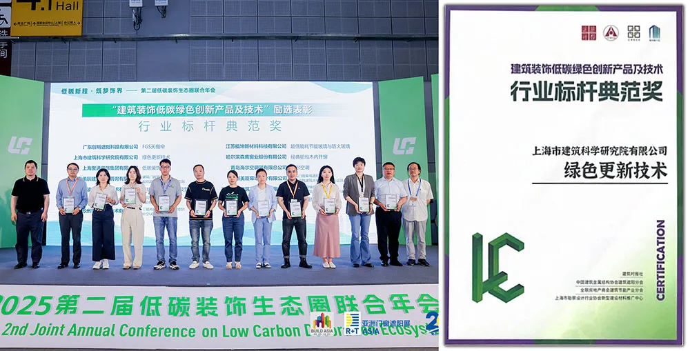 會議期間公布了“建筑裝飾低碳綠色創(chuàng)新產(chǎn)品及技術(shù)”勵(lì)選名單,上海市建筑科學(xué)研究院有限公司“綠色更新技術(shù)”榮獲“行業(yè)標(biāo)桿典范獎(jiǎng)”。