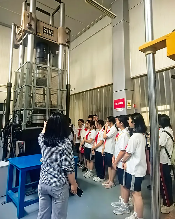 同學(xué)們參觀了上海市工程結(jié)構(gòu)安全重點(diǎn)實(shí)驗(yàn)室。通過近距離觀察各類實(shí)驗(yàn)儀器設(shè)備,聆聽實(shí)驗(yàn)室修建背后的故事,同學(xué)們不僅學(xué)習(xí)了建筑結(jié)構(gòu)試驗(yàn)的開展過程,也進(jìn)一步理解了實(shí)驗(yàn)室修建的初衷。