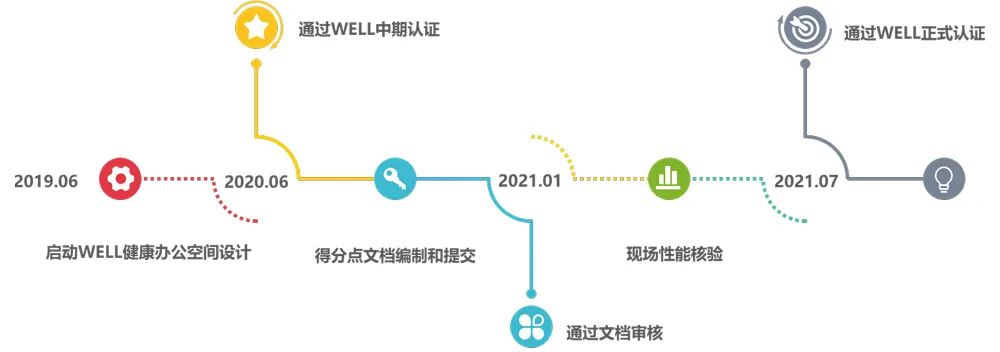 上海建科院于2019年上半年啟動了十號樓健康室內空間的專項設計,秉持員工關懷和健康人本的核心理念,通過引入WELL健康人居技術體系,開展了從設計、施工、采購、調適和核驗的全流程閉環(huán)管理,打造以人為本、綠色低碳、智慧高效的新一代辦公環(huán)境樣本。今年7月,項目順利通過了由第三方開展的現(xiàn)場性能核驗,最終以106分的高分通過了WELL鉑金級正式認證,為歷時兩年的健康空間專項工作畫上了圓滿的句號。