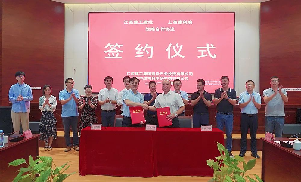 2021年9月23日,上海市建筑科學(xué)研究院有限公司與江西建工集團(tuán)建設(shè)產(chǎn)業(yè)投資有限公司戰(zhàn)略合作簽約在江西省南昌市舉行。上海市建筑科學(xué)研究院有限公司黨委副書記、總經(jīng)理蔣利學(xué),副總經(jīng)理王瓊、副總經(jīng)理張輝,江西建工建投副董事長、總經(jīng)理枚東華,副總經(jīng)理丁立民、總工丁毅杰等領(lǐng)導(dǎo)出席簽約儀式。