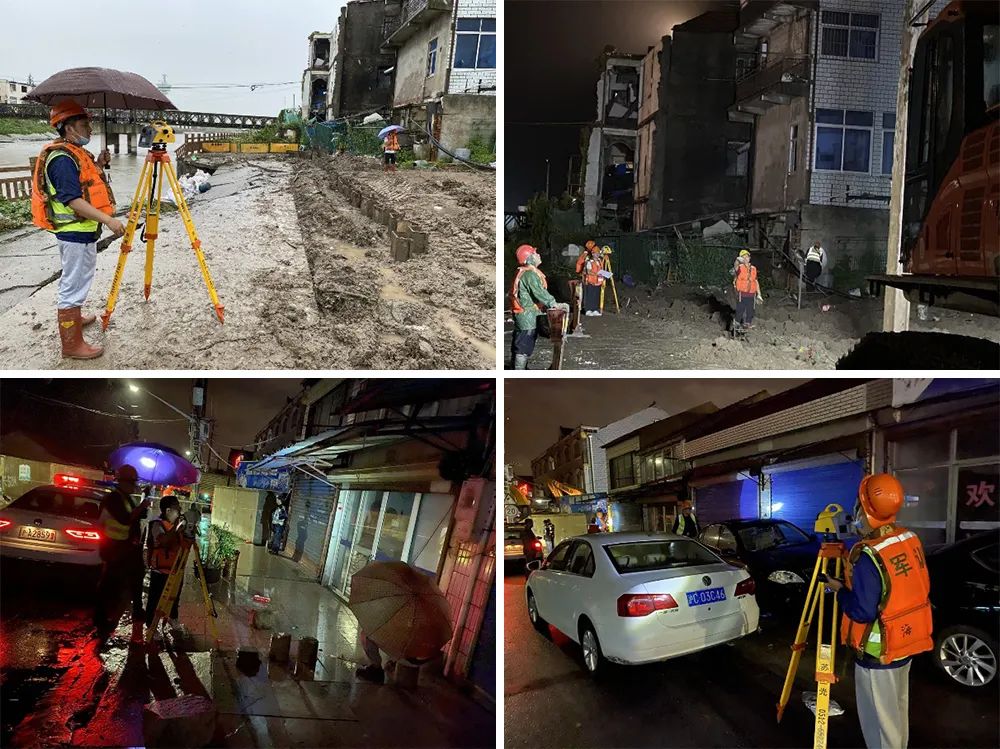 上海建科院監(jiān)測(cè)團(tuán)隊(duì)充分發(fā)揮了黨員的先鋒模范作用,抵達(dá)現(xiàn)場(chǎng)后,冒著大雨踩著泥漿,對(duì)險(xiǎn)情現(xiàn)場(chǎng)和周邊進(jìn)行了詳細(xì)的踏勘,調(diào)查了險(xiǎn)情周邊房屋的建筑結(jié)構(gòu)特點(diǎn)、質(zhì)量狀況、變形敏感程度、現(xiàn)場(chǎng)布設(shè)條件等情況。