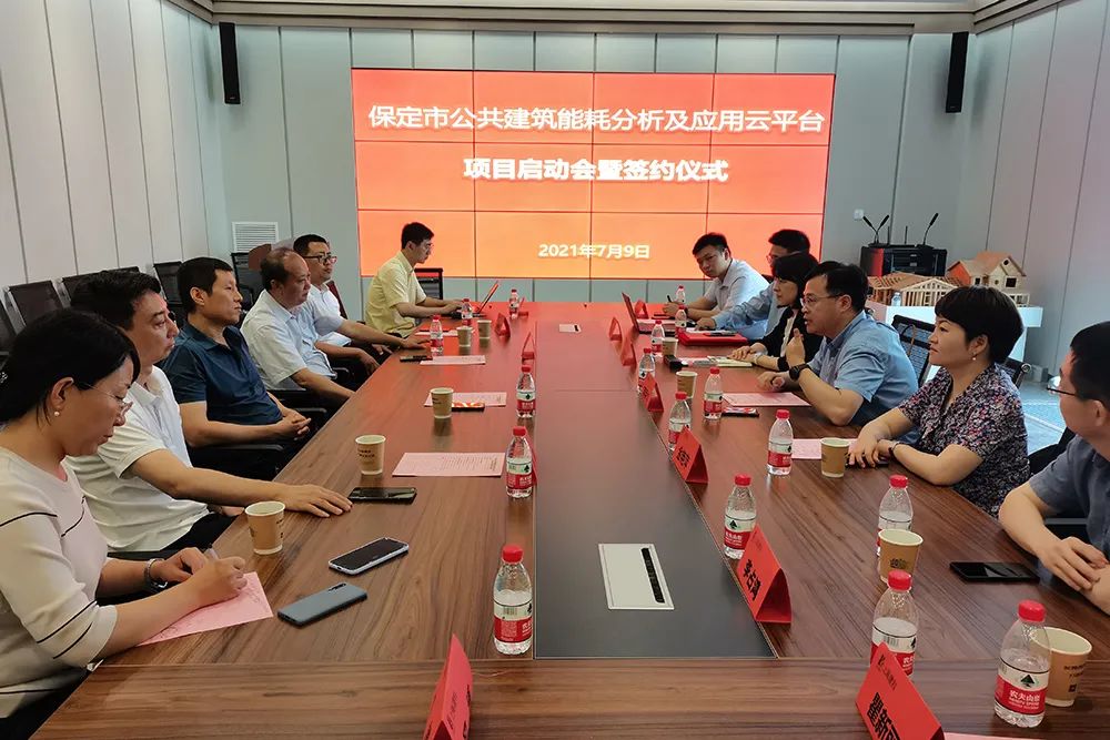 同期,上海建科院在保定市綠色建筑發(fā)展中心召開了保定市公共建筑能耗分析及應(yīng)用云平臺項目啟動會暨簽約儀式,保定市住房和城鄉(xiāng)建設(shè)局副局長楊濤、建筑節(jié)能與科技處處長李振川,保定市機關(guān)事務(wù)管理局房管與節(jié)能處三級主任科員趙艷松,保定市綠色建筑發(fā)展中心主任張順、綜合信息科科長和博出席并見證了簽約儀式,建科院總經(jīng)理蔣利學(xué)、副總經(jīng)理張蓓紅及上海建科項目團隊共同參加。